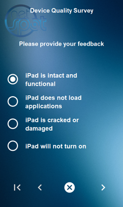 L'option permet à l'usager de répondre à un sondage sur l'état de l'appareil au retour.